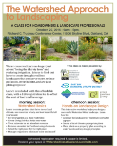 Share this flyer with friends, family and landscapers in your area. Watershed Approach Class – Oakland