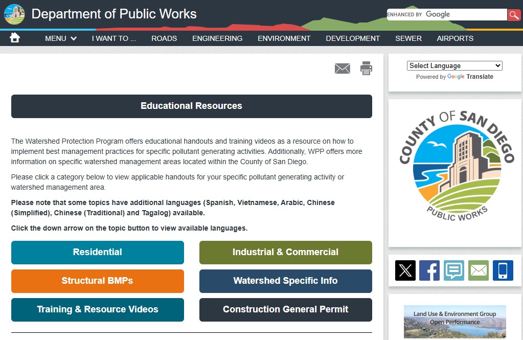Check out San Diego County Department of Public Works Resources: